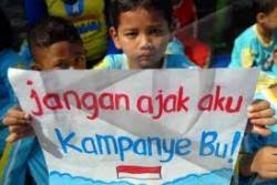 fenomena anak di ikut sertakan dalam kampanye partai bukan barang baru lagi di negeri ini. biasanya orang-orang yang fanatik terhadap partai tertentu membawa anak-anak mereka dengan alasan demi pendidikan politik. jika dilihat secara sekilas hal itu seolah-olah benar. anak-anak sejak kecil dididik tentang perpolitik sehingga nantinya ketika besar tidak melakukan golput. akan tetapis saya kurang setuju terhadap hal tersebut, hal itu juga harus di lihat dari sisi yang lain . pertama ketika anak ikut kampanye sebuah partai toh disana hanya bermain-main. anak-anak hanya dijadikan semacam penambah masa kampanye. kedua anak-anak malah nantinya bisa menjadi fanatik buta terhadap partai tertentu. hal itu malah nantinya yang dapat membuat buruk perpolitikan di negeri ini. bila dihubungkan dengan pendidikan politik bagi anak, masih banyak kegiatan lain yang saya nilai lebih efektif daripada diikutsertakan dalam kampanye partai tertentu. misal dengan memberikan pengajaran tentang hakikat dari politik itu sendiri. baik diselipkan dalam pembelajaran agama maupun pembelajaran umum lainnya.